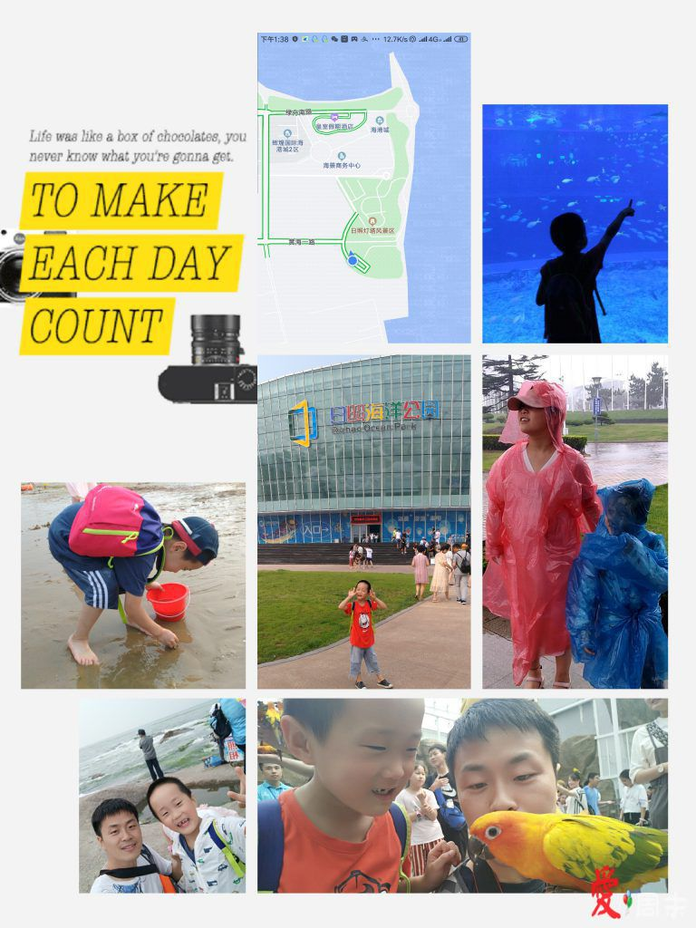 第一次见到大海,很开心。捡贝壳、观看海洋鱼类、还有淘气的小鹦鹉。